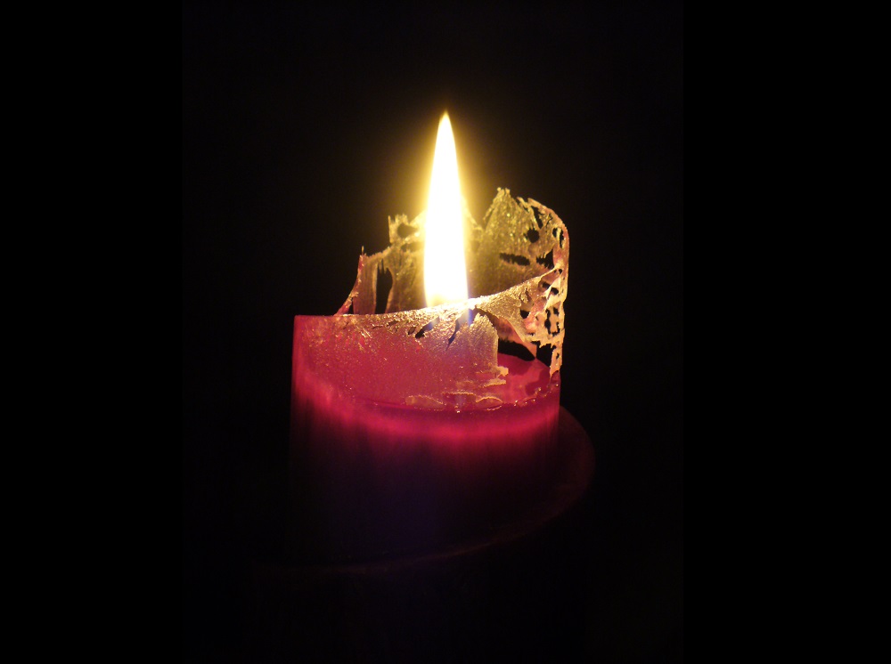 Svíčka strom života fialový s vůní 100% přírodního esenciálního oleje levandule
